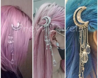 Crescent Moon Hair Clip Chains Charms Wiccan Crystal Stars Beads Pin Barrette 5z Ebay